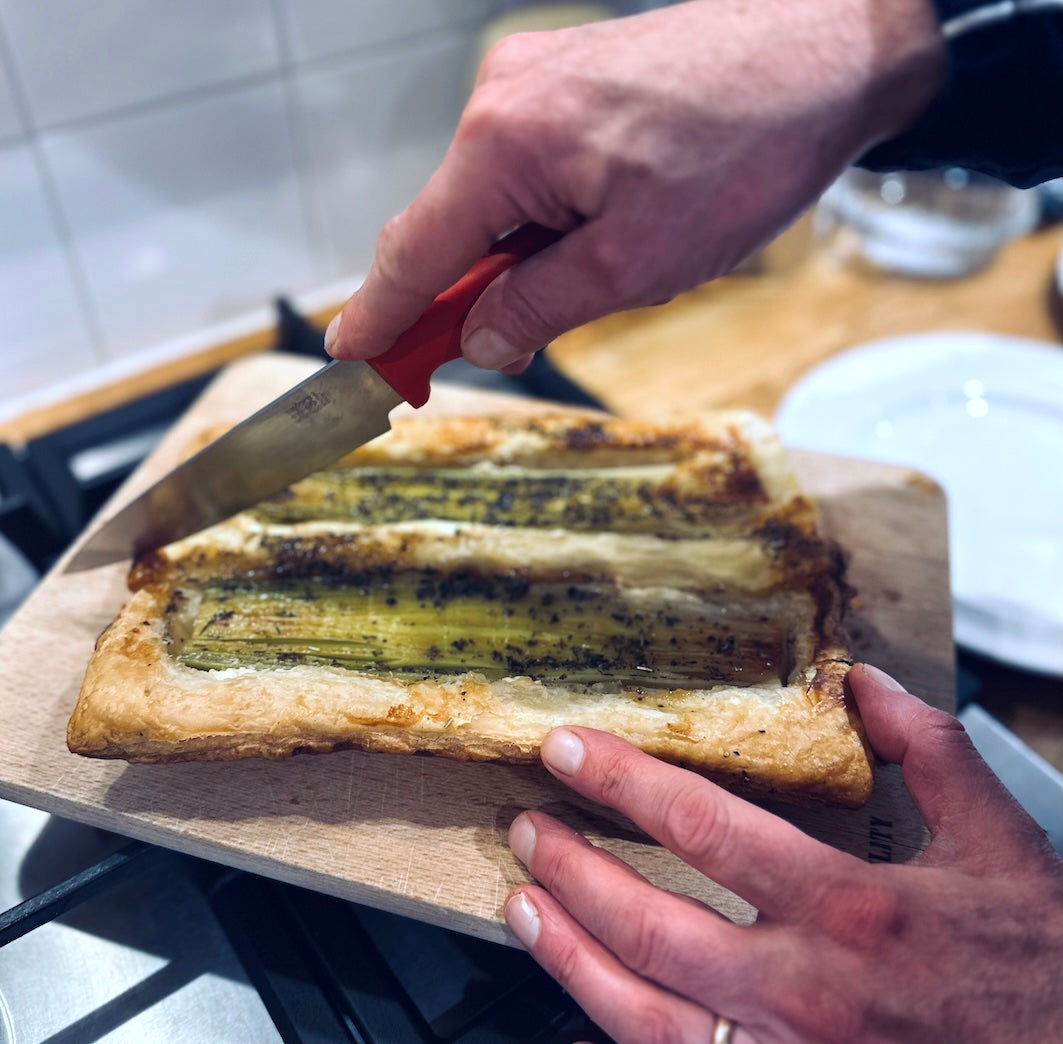 A sheet of ready rolled puff pastry, cut in half lengthwise.